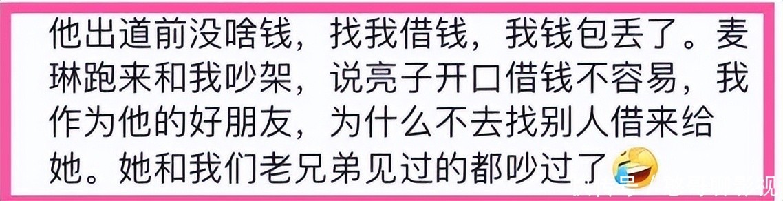 菠菜圈平台节目播出后,这位“500哥”现身说,当时麦琳跑来跟他吵了一架,说李行亮开口借钱不容易,甚至,质问这位朋友,为什么不去找别人借来给她。