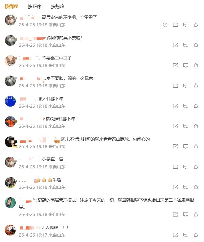 赛后,愤怒的泰山球迷,纷纷涌入俱乐部官微下面宣泄不满。尽管泰山官微赛后一直沉默,但球迷还是在最新一条动态下面留言宣泄不满:“臭不要脸,踢得什么玩意!”;“丢人现眼!”;“文旅就继续混日子吧!”